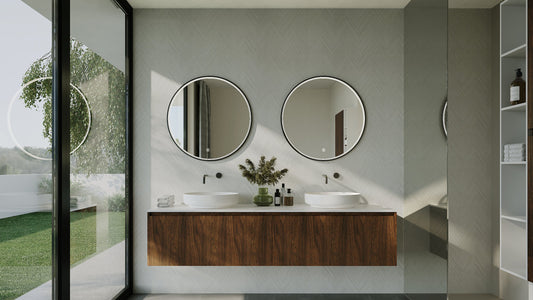 CRESCENT 9090 Matte Black Framed Round LED Mirror